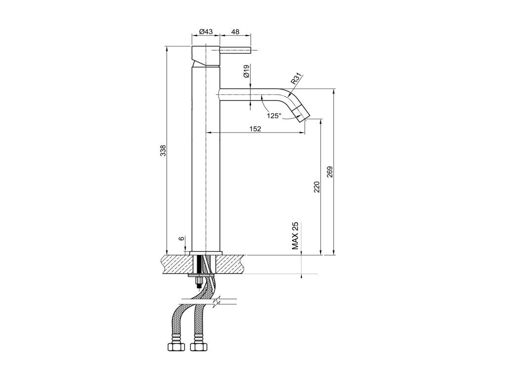 Sapho MINIMAL stojánková umyvadlová baterie vysoká, nerez mat MI202