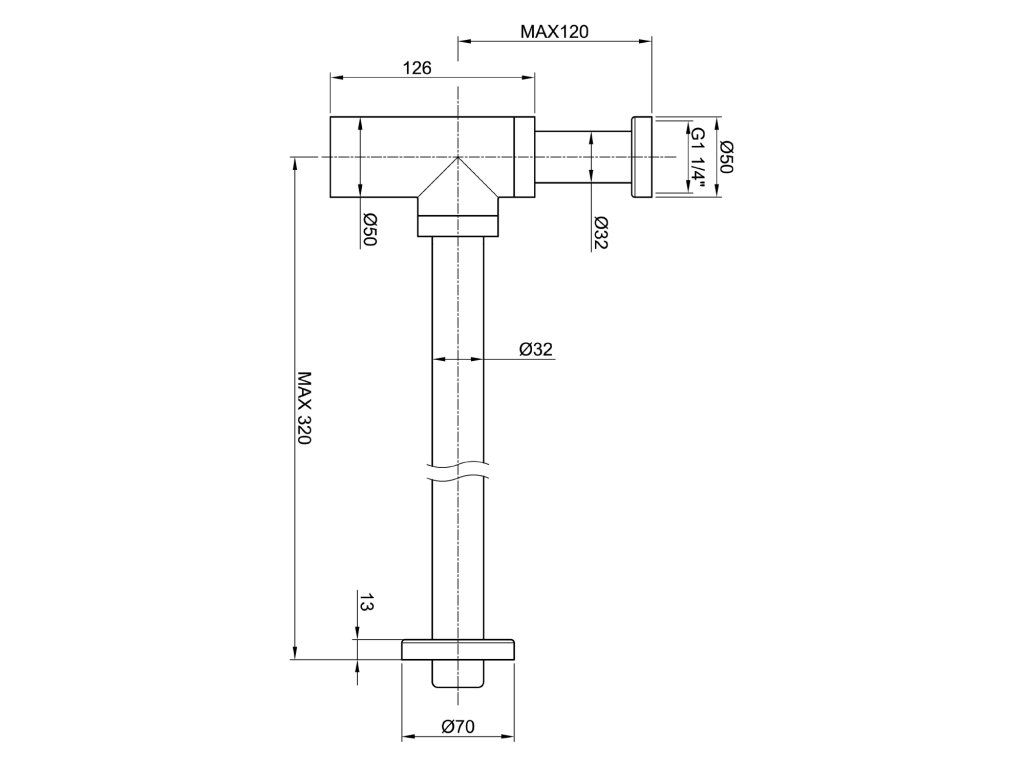 Sapho MINIMAL umyvadlový sifon 5/4", odpad 32mm, nerez mat MI036