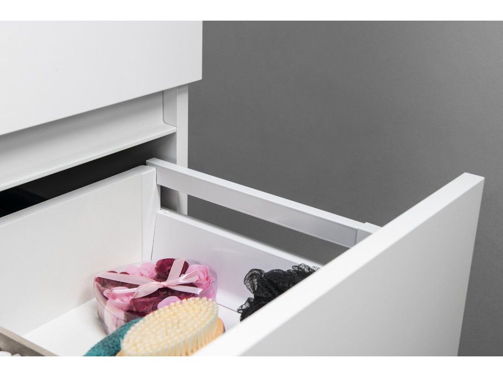 Nábytek je vybaven pojezdy zásuvek s pomalým dojezdem a systémem automatického dovření zásuvek. Již žádné hlučné dovírání.