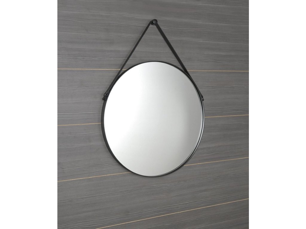 Kulaté zrcadlo s koženým páskem