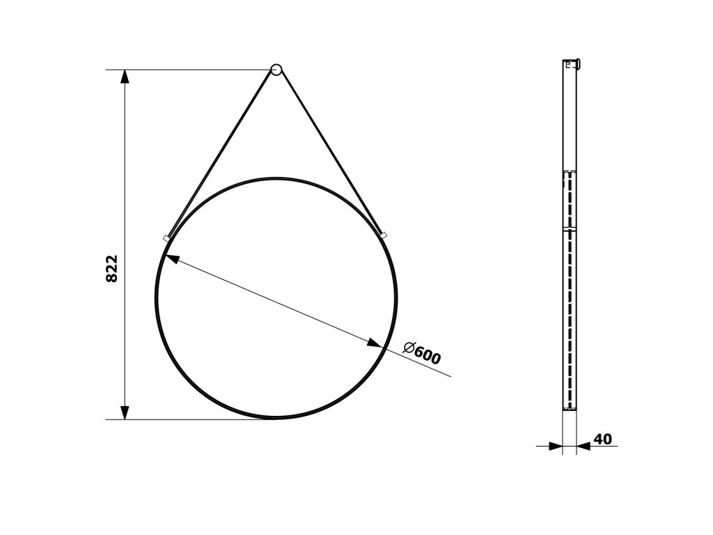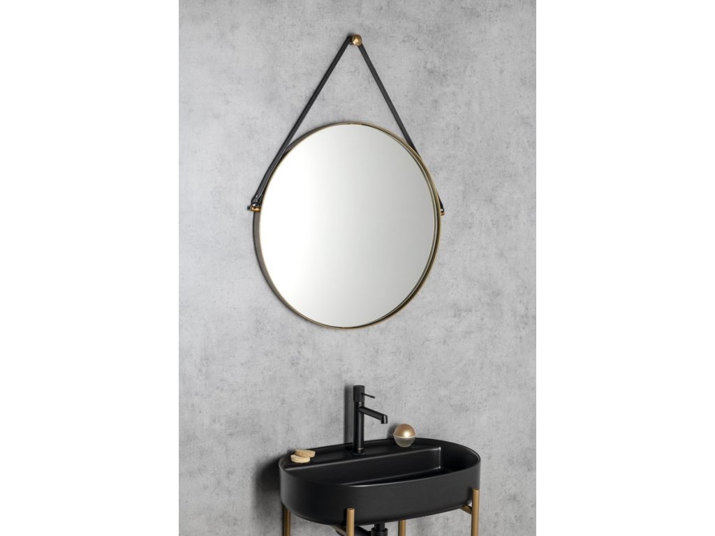 Sapho ORBITER kulaté zrcadlo s koženým páskem ø 60cm, zlato mat ORT060G