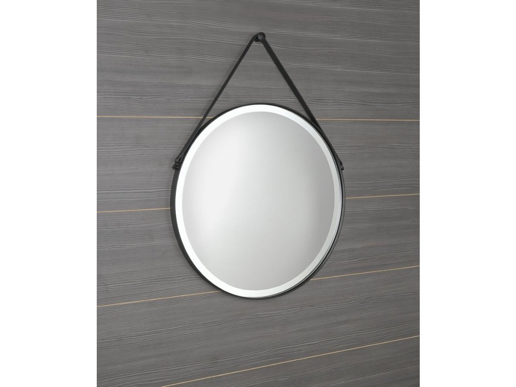Sapho ORBITER kulaté zrcadlo s LED osvětlením ø 60cm, kožený pásek, černá mat ORL060