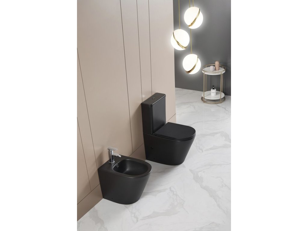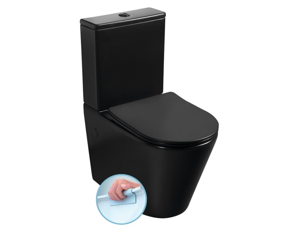 Sapho PACO WC kombi, Rimless, spodní/zadní odpad, černá mat PC1012WRB
