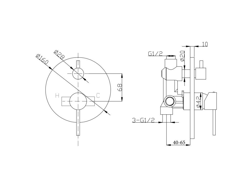 Sapho PAX podomítková sprchová baterie, 2 výstupy, otočný přepínač, chrom XA43