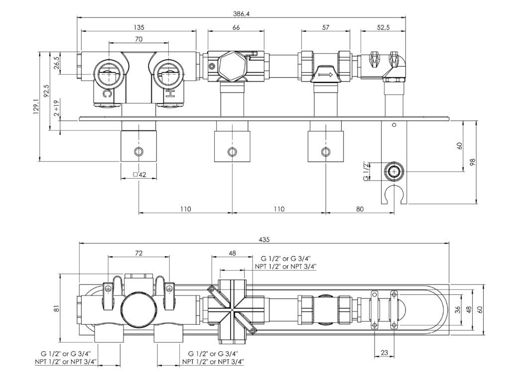 Sapho Podomítková termostatická sprchová/vanová baterie s držákem ruční sprchy,2 výstupy,hranatá,chrom MB453