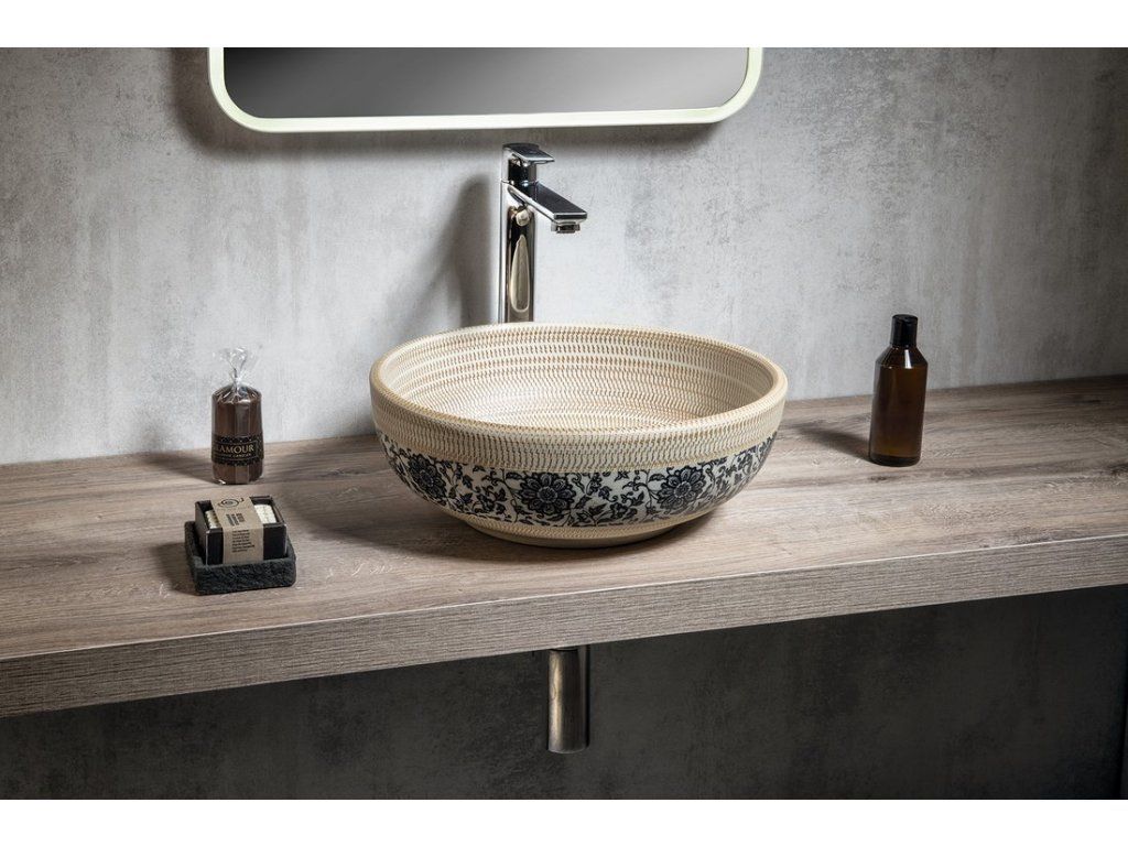 Sapho PRIORI keramické umyvadlo na desku, Ø 41 cm, béžová s modrým vzorem PI011