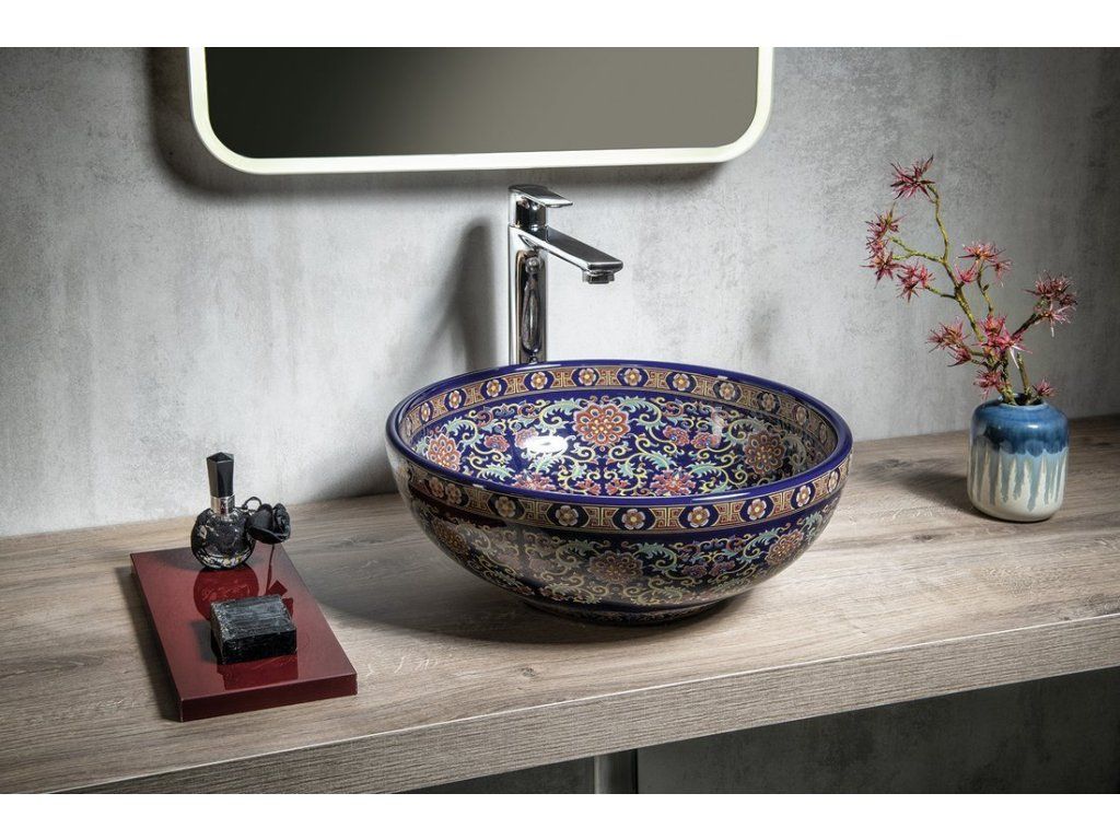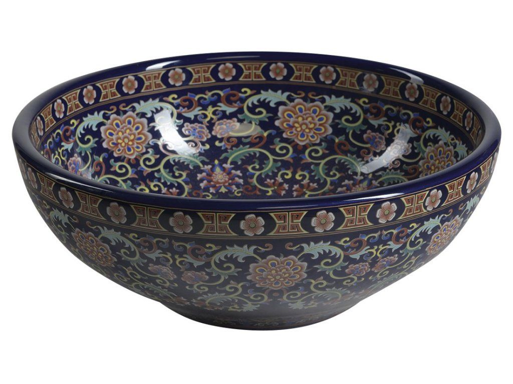 Sapho PRIORI keramické umyvadlo na desku, Ø 41 cm, fialová s ornamenty PI022