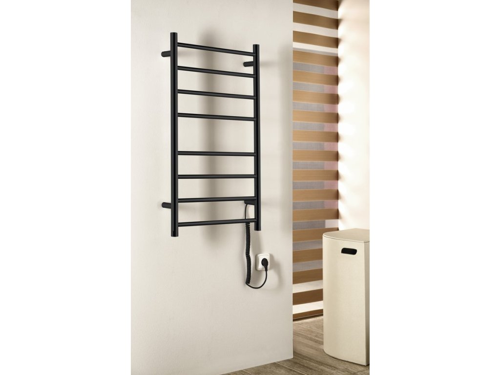 Sapho REDONDO elektrický sušák ručníků, kulatý, 500x900 mm, 75 W, černá mat ER220BV