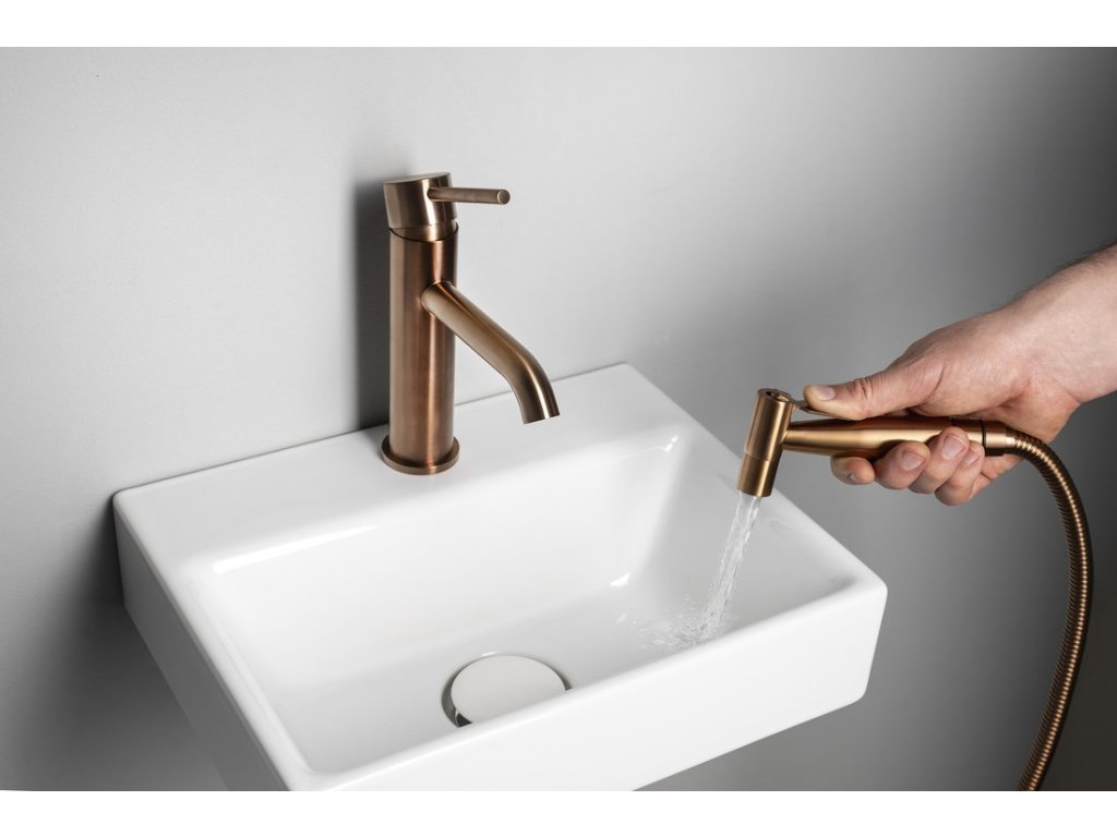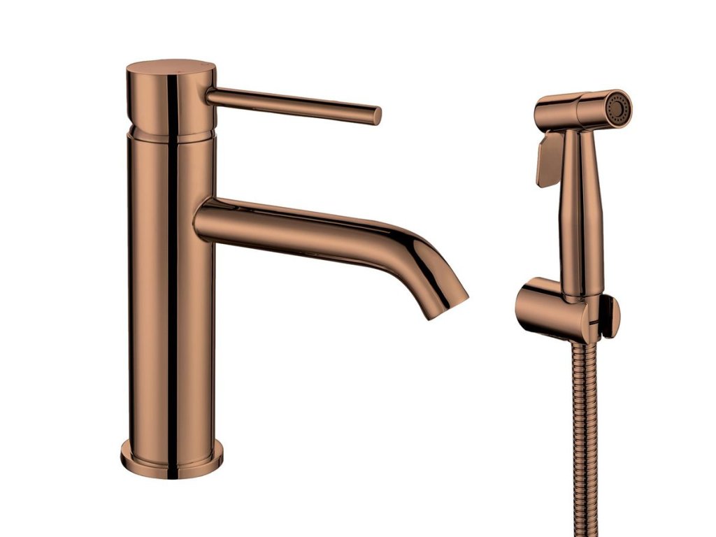 Sapho RHAPSODY stojánková umyvadlová baterie s bidetovou sprchou, měď mat 1209-09PG