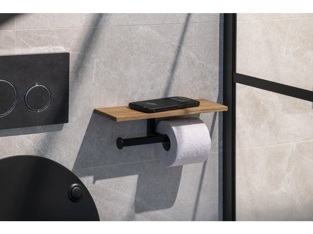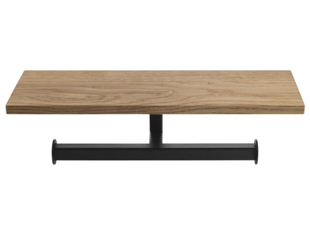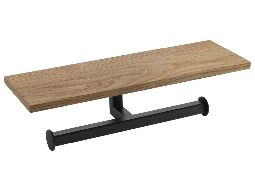Sapho SKA dvojitý držák toaletního papíru s poličkou 30cm, černá mat/dub SKA425
