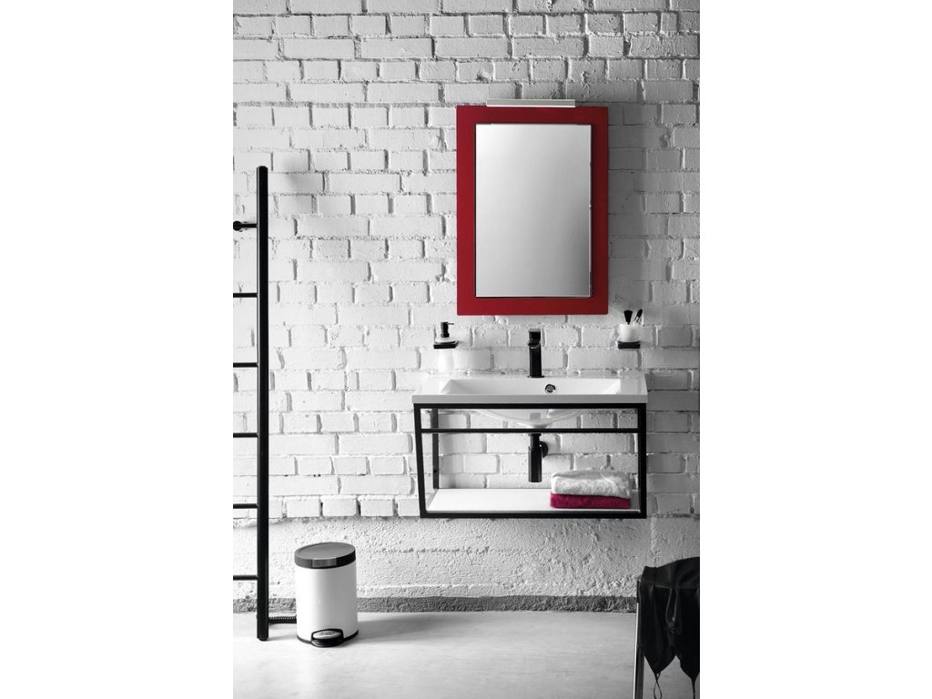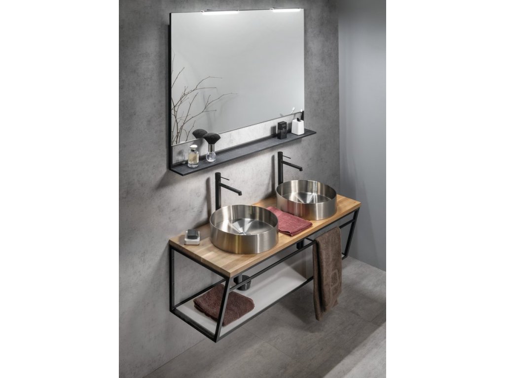 - Konstrukce pod umyvadlo, s bílou policí z lakované MDF desky.