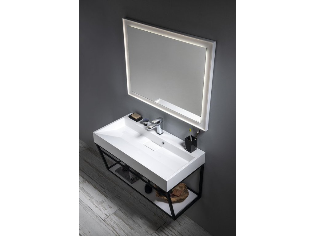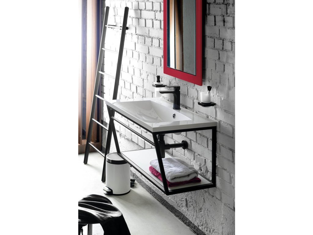 - Konstrukce pod umyvadlo, s bílou policí z lakované MDF desky.