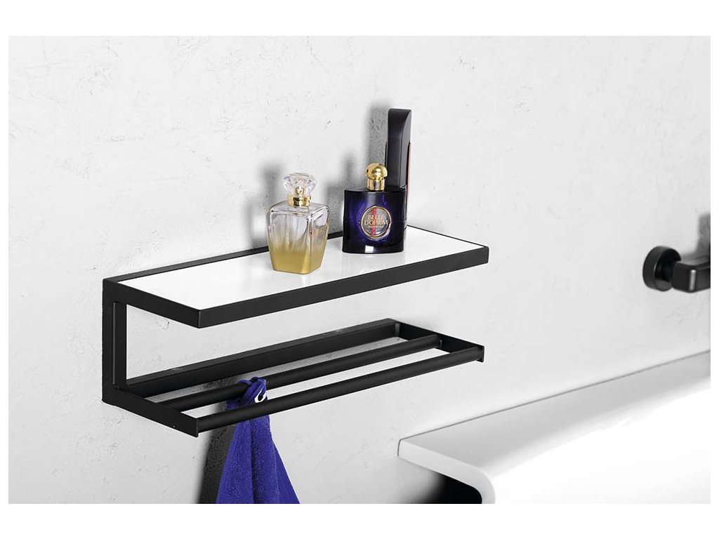 Sapho SKA nástěnná police 450x140x160mm, černá mat s bílou MDF deskou SKA401