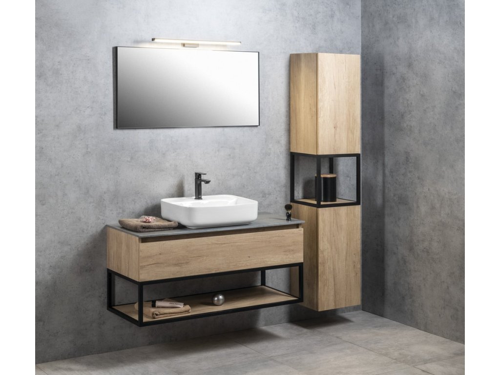 Konstrukce ze série SKARA jsou vhodné do koupelen zařizovaných v moderním i industriálním stylu. Skvěle je doplní vysoká skříňka SKARA ve stejném dekoru nebo skříňky a zrcadla TREOS s rámem v dřevěném dekoru. Perfektní je i kombinace s podsvíceným zrcadlem SORT v černém hliníkovém rámu.