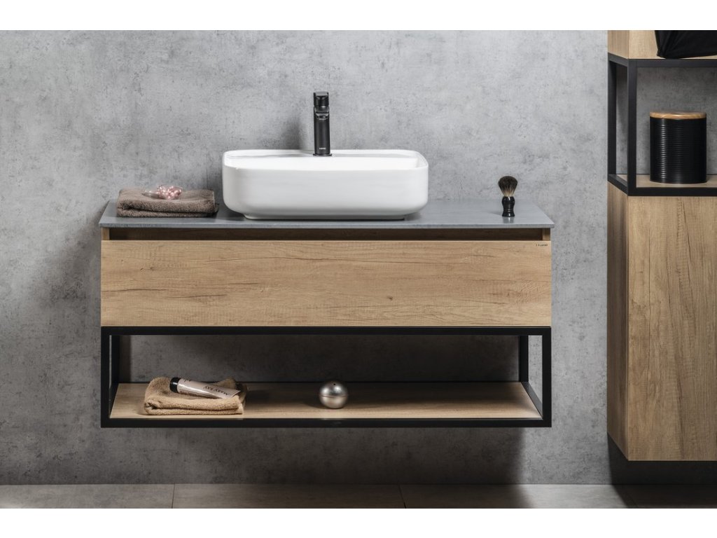 Sapho SKARA umyvadlová skříňka 100x50x45cm, černá mat/dub alabama CG009-2222