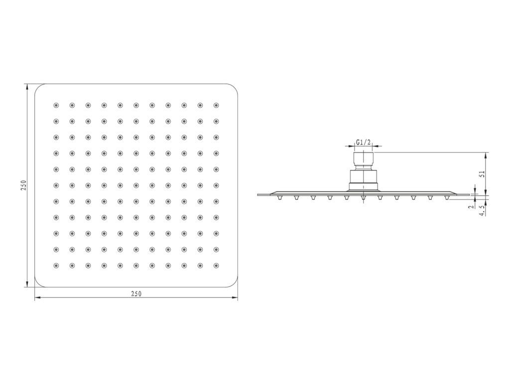 Sapho SLIM hlavová sprcha, 250x250mm, nerez lesk MS564