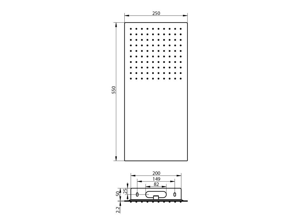 Sapho SLIM nástěnná hlavová sprcha, 250x550mm, nerez lesk MS732