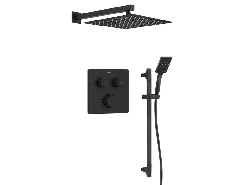 Sapho SMART SELECT podomítkový sprchový set s termostatickou baterií, 2 výstupy, posuvný držák sprchy, černá mat RP042B-02