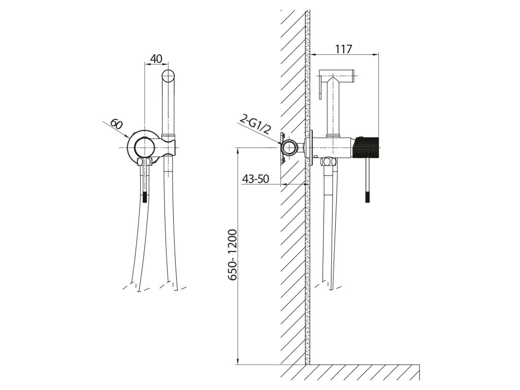 Sapho SOLARIS podomítková bidetová baterie se Stop sprškou, kulatá, černá mat WD040B