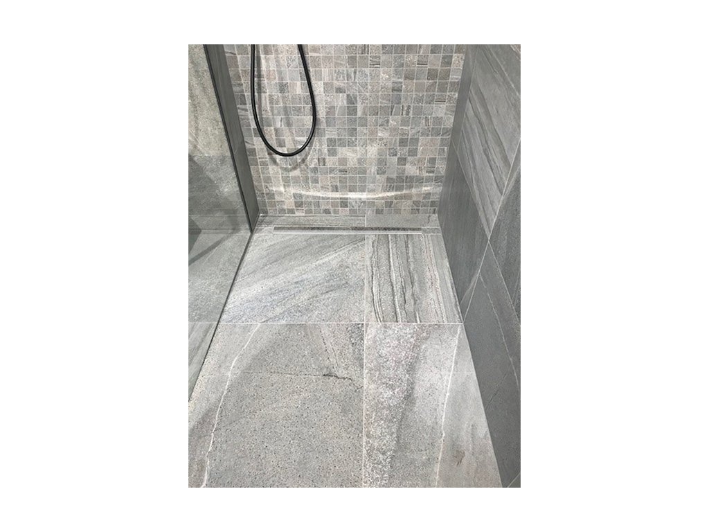 - Spádovací lišta pomáhá zakrýt přechod vzniklý během výstavby sprchového koutu mezi spádovanou a nespádovanou částí podlahy.