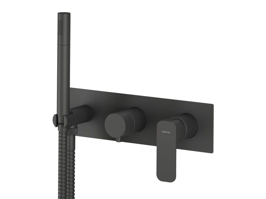 Sapho SPY podomítková sprchová/vanová baterie s ruční sprchou, 3 výstupy, černá mat PY53/15