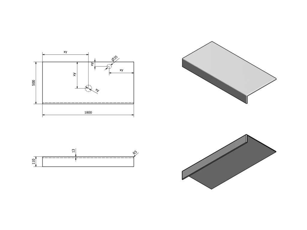 - Možnost dodání s otvory pro baterii a odpad dle výkresu (lze vrtat i v místě instalace)