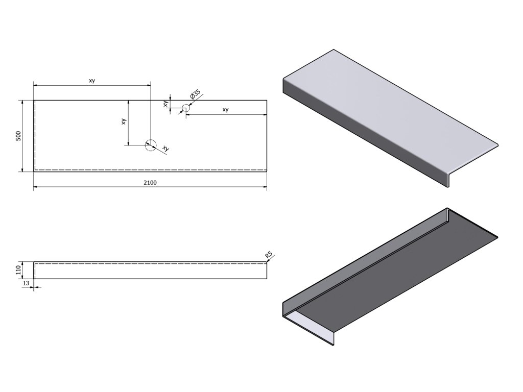 - Možnost dodání s otvory pro baterii a odpad dle výkresu (lze vrtat i v místě instalace)