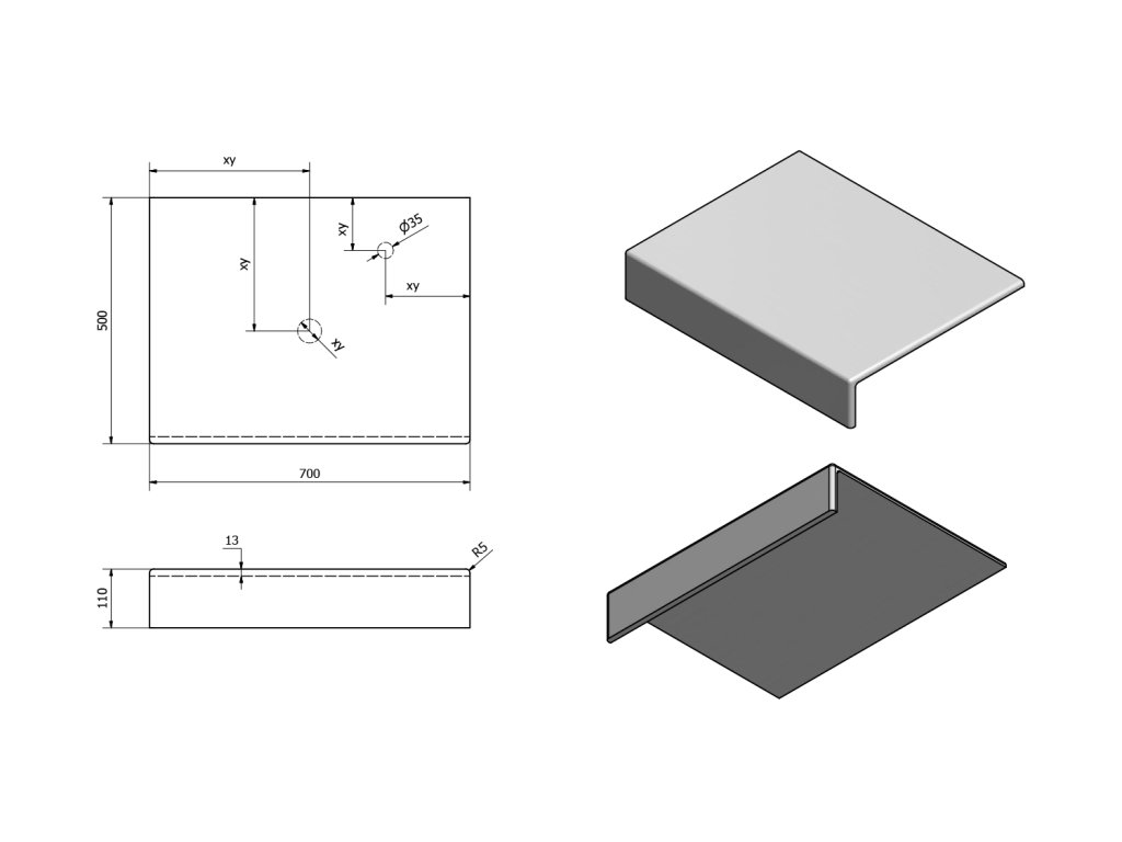 - Možnost dodání s otvory pro baterii a odpad dle výkresu (lze vrtat i v místě instalace)