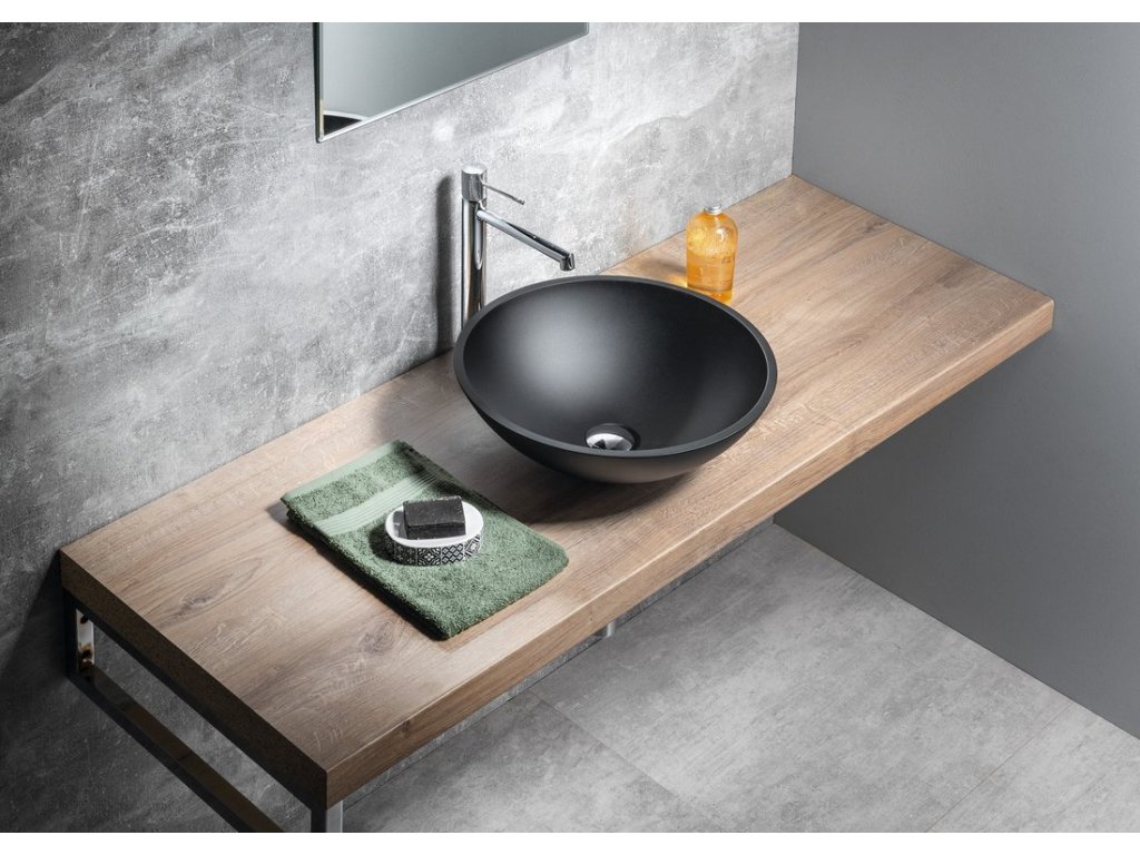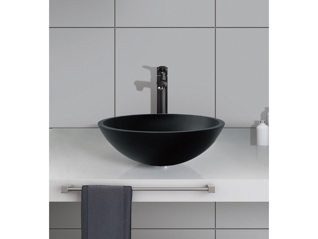 Sapho TELICA skleněné umyvadlo na desku Ø 42cm, černá mat TY181B