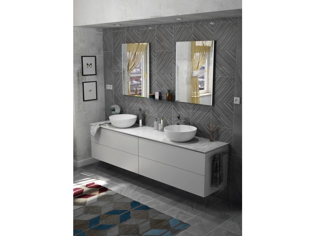TREOS + TREOS zápustná umyvadla (Solid Surface); TREOS + deska a umyvadlo na desku