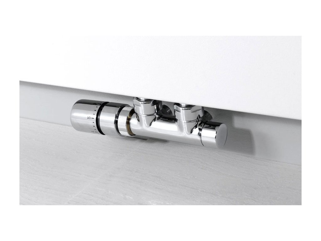 Ventil s termostatickou hlavicí: Integrovaný termostat udržuje nastavenou teplotu okolí. Termostatická hlavice musí být v místě přívodu teplé vody (mimo MONO ONE).