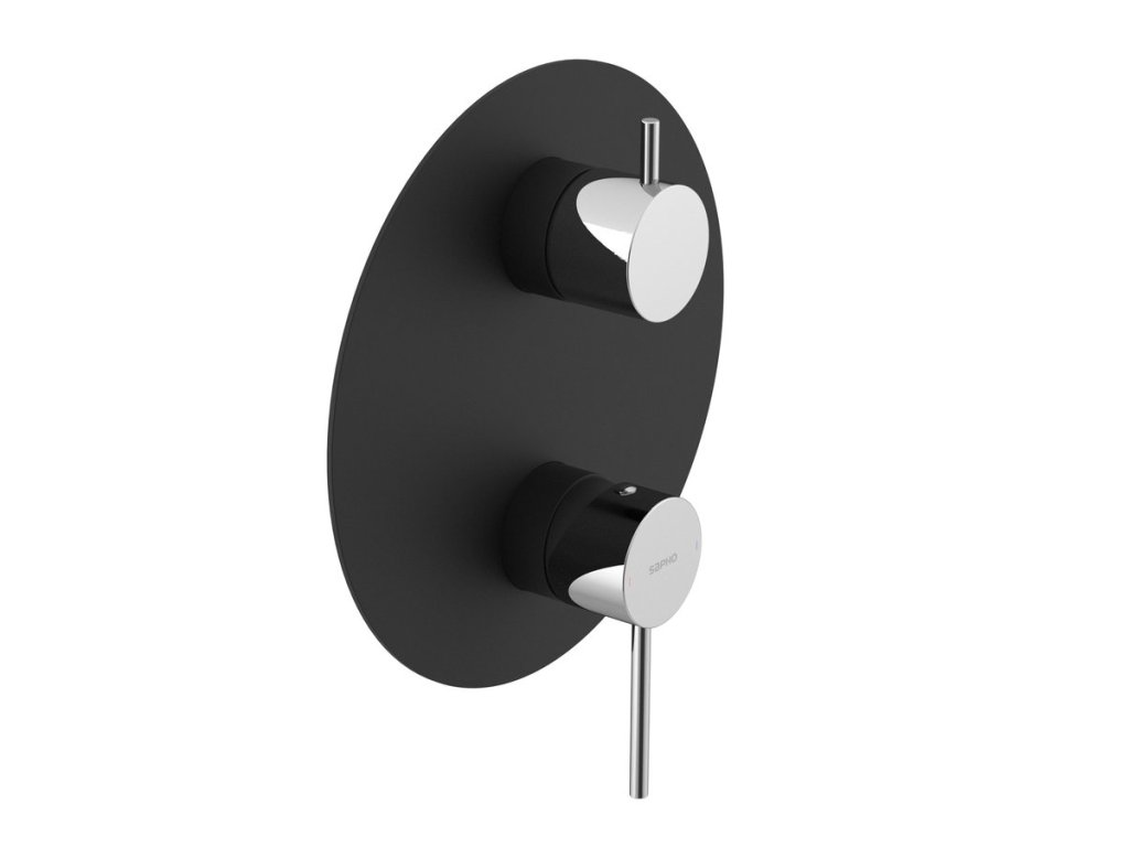 Sapho ULTRAMIX podomítková sprchová baterie, 2 výstupy, otočný přepínač, černá mat/chrom UT043BC