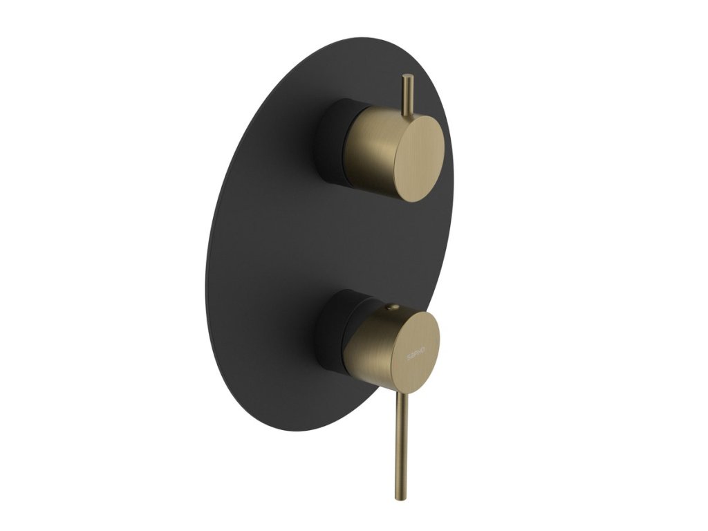 Sapho ULTRAMIX podomítková sprchová baterie, 3 výstupy, otočný přepínač, černá mat/zlato mat UT044BG