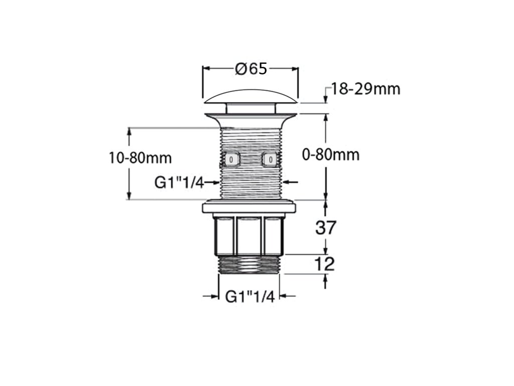 Sapho Umyvadlová výpust 5/4“, click-clack, betonová zátka, 10-80mm, antracit pololesk AS916