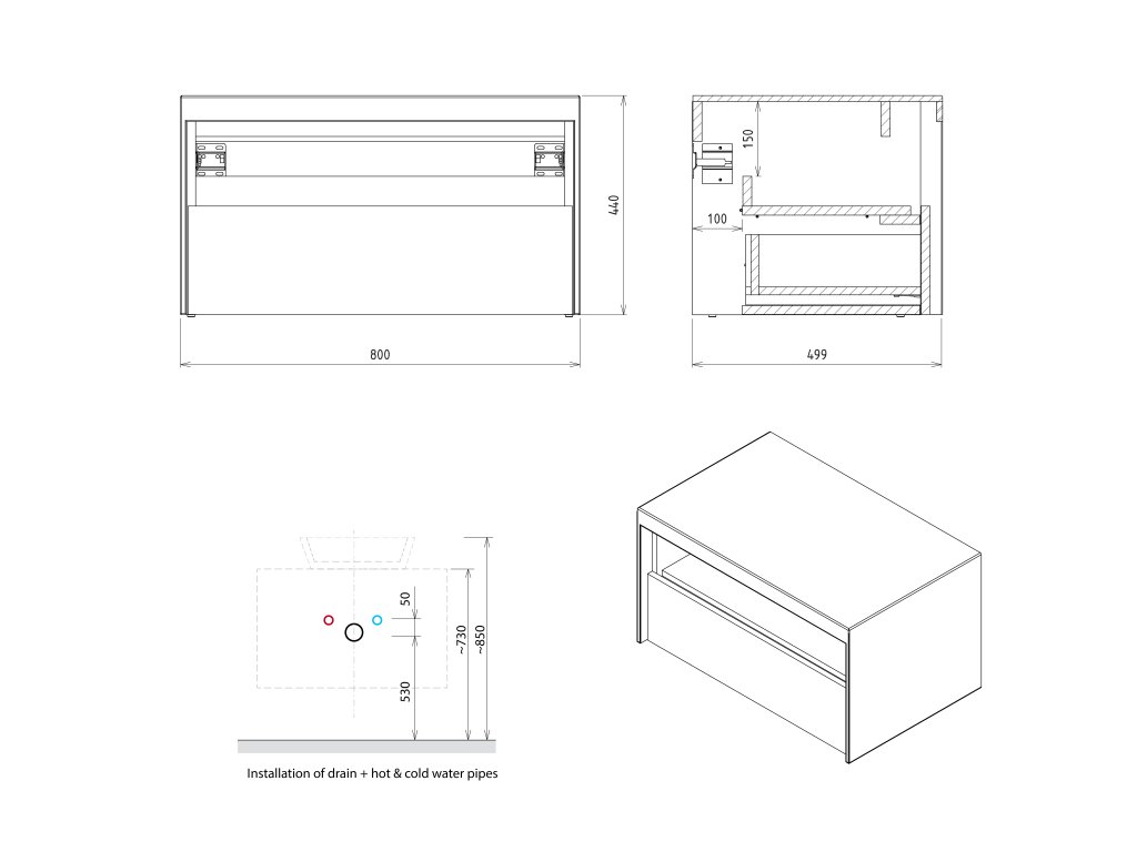 Nábytek je vybaven pojezdy zásuvek s pomalým dojezdem a systémem automatického dovření zásuvek. Již žádné hlučné dovírání.