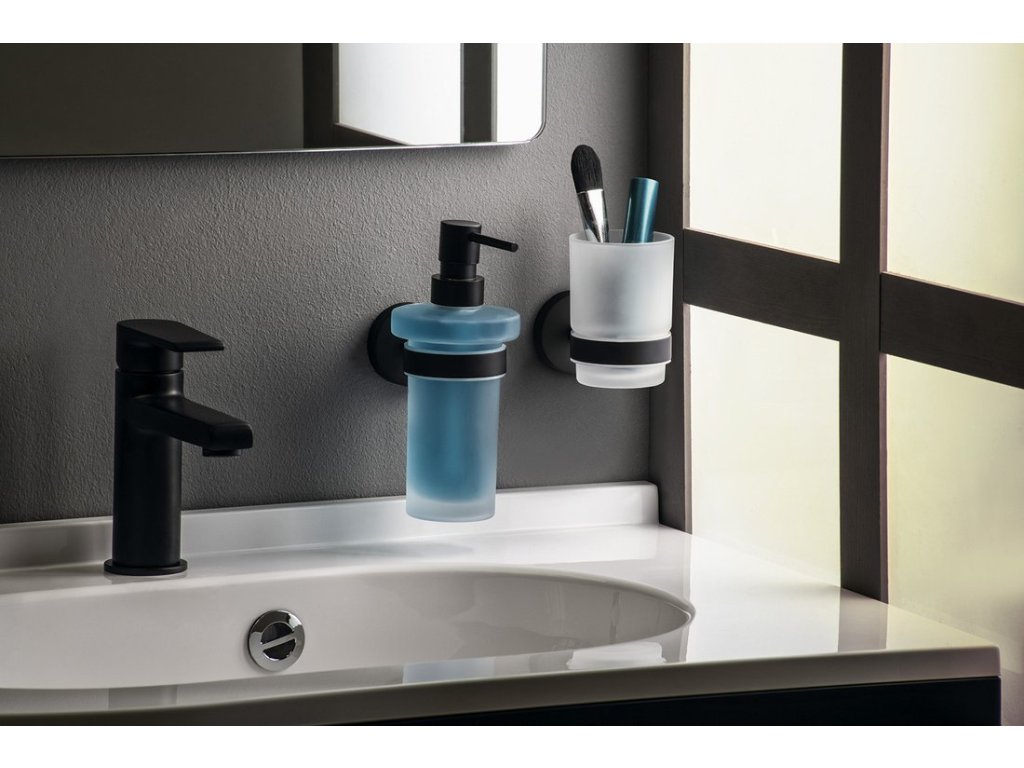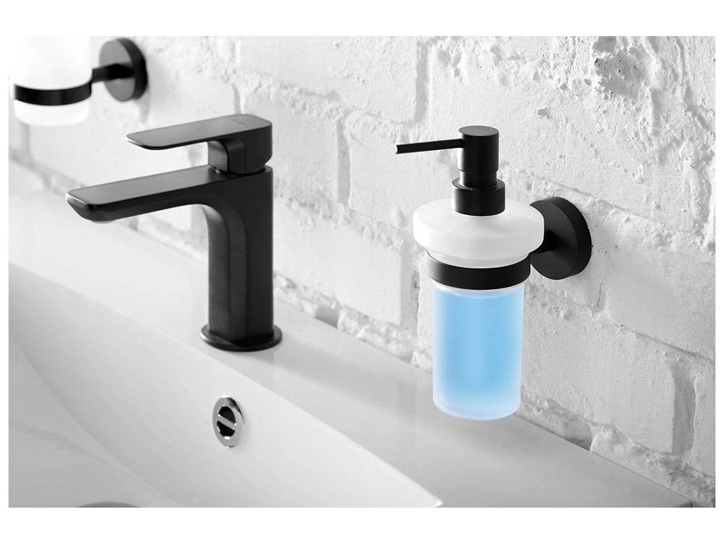 Sapho X-ROUND BLACK dávkovač mýdla 230ml, mléčné sklo, černá mat XR101B