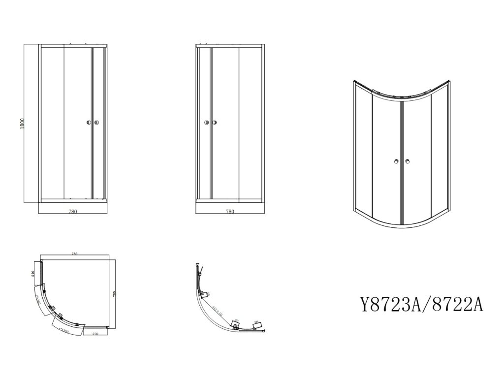 - čtvrtkruhový sprchový kout s nízkou vaničkou
