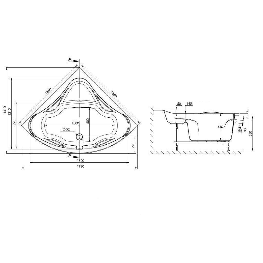 Scansani Wivea rohová akrylátová vana Délka vany: 145cm, WS145