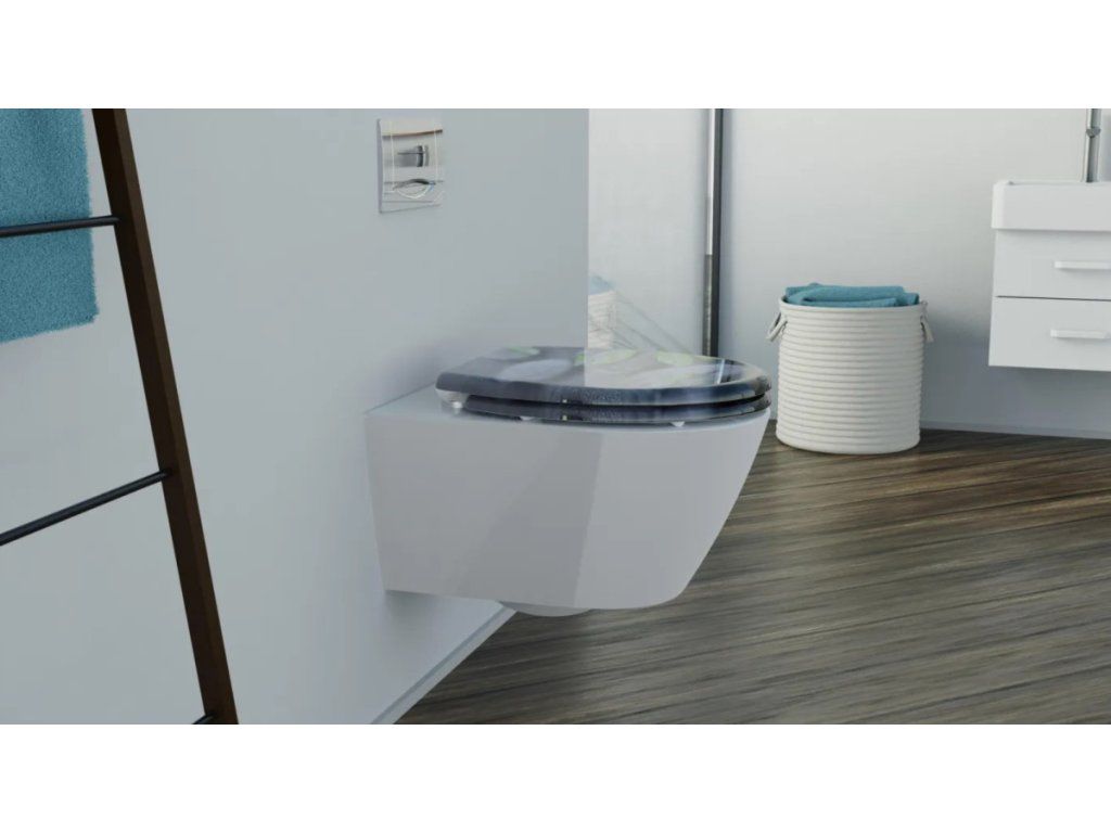 - Duroplastové WC sedátko STONE, s mechanismem měkkého zavírání a rychlouzávěrem