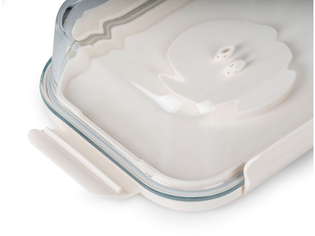 Plastová víka dóz jsou vybavena vakuovacím ventilem a praktickým nastavováním data. Budete tak vědět, kdy byly potraviny vakuovány nebo do kdy se mají spotřebovat. Ventil uprostřed víka lze jemně zmáčknout pro snadné uvolnění vakua.