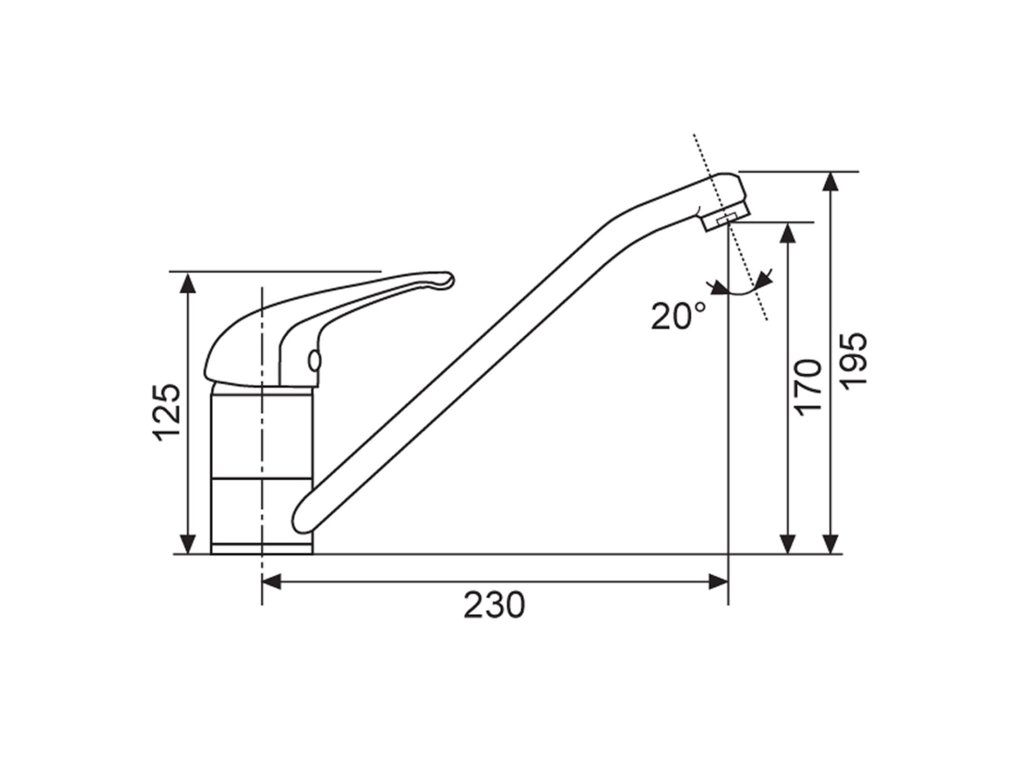 Velmi kvalitní zpracování, výška baterie 195 mm. Kuchyňská baterie má otočné raménko pro usnadnění používání.