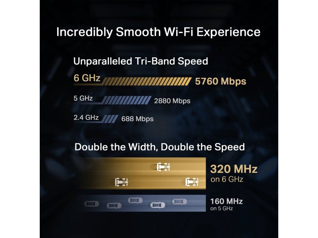 - Standard Wi-Fi 7 s přenosovou rychlostí až 5 760 Mbit/s v pásmu 6 GHz