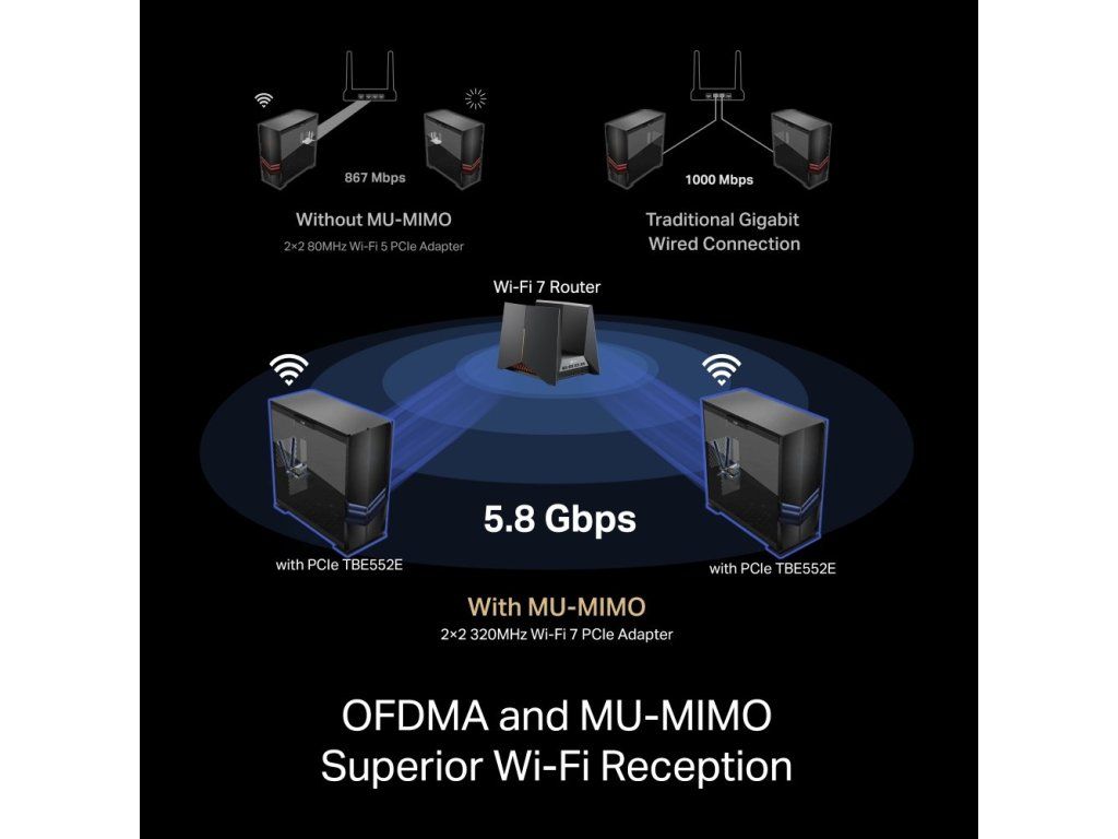 Užijte si nerušené streamování a plynulý chod aplikací. Díky zrychlené propustnosti, nižší latenci a silnější ochraně proti rušení si vychutnáte špičkový výkon standardu Wi-Fi 7. Technologie Bluetooth 5.4 zajistí širší pokrytí a vyšší rychlost všech vašich připojených zařízení, od sluchátek až po herní ovladače.