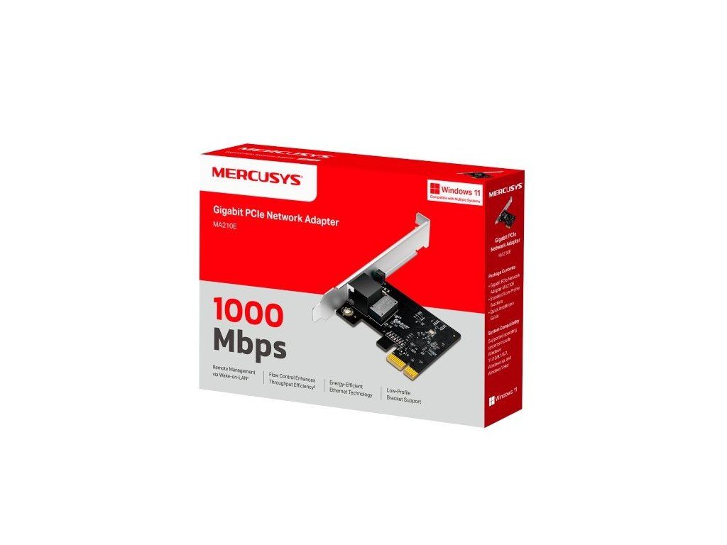 TP-Link Mercusys MA210E je gigabitová PCIe síťová karta, která podporuje rychlosti 10/100/1000 Mb/s. Díky flexibilní instalaci s plnou i nízkoprofilovou záslepkou ji snadno využijete v různých počítačových sestavách. Poskytuje stabilní a spolehlivé připojení k internetu i k místním datovým sítím.