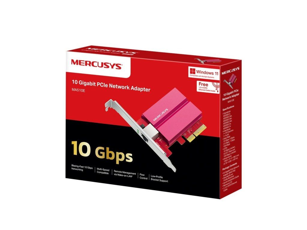 MA510E přináší 10G přenosovou rychlost přes rozhraní PCIe 3.0 ×4. Podporuje automatické přepínání mezi více rychlostmi (10G/5G/2.5G/1G/100M), proto vždy zajistí optimální propustnost dle síťové infrastruktury. Výborně se hodí pro práci s NAS úložišti, servery nebo velkými multimediálními soubory, ať už v domácím nebo profesionálním prostředí.