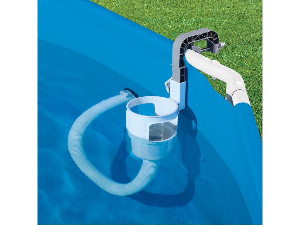 Skimmer CF pro bazény QUICK a FRAME Závěsný skimmer CF je ideální pro odstraňování plovoucích nečistot (např. listí, jehličí, hmyzu, vlasů apod.). Skimmer je vhodný pro všechny typy bazénů s nafukovacím límcem nebo rámovou konstrukcí. Skimmer upevníte na nafukovací límec nebo pomocí výměnného držáku na rámový bazén. Propojovací hadicí spojíte skimmer s bazénovou tryskou (sací), kdy použijete přiložené adaptéry. Pravidelně vyjměte košík z těla skimmeru a odstraňte nečistoty, abyste zabránili rozkladu nečistot v bazénu a tím zhoršení kvality vody. Balení: hmotnost balení: 1.35 kg rozměry balení (VxŠxH): 21 x 24 x 33 cm Obsah balení: Těleso skimmeru Košík skimmeru 1x úchyt pro uchycení na bazén s nafukovacím límcem 1x úchyt pro uchycení na bazén s rámovou konstrukcí Pojistná matice Propojovací hadice Hadicová spona 2x Adaptér na tryskuDoplňkové parametry