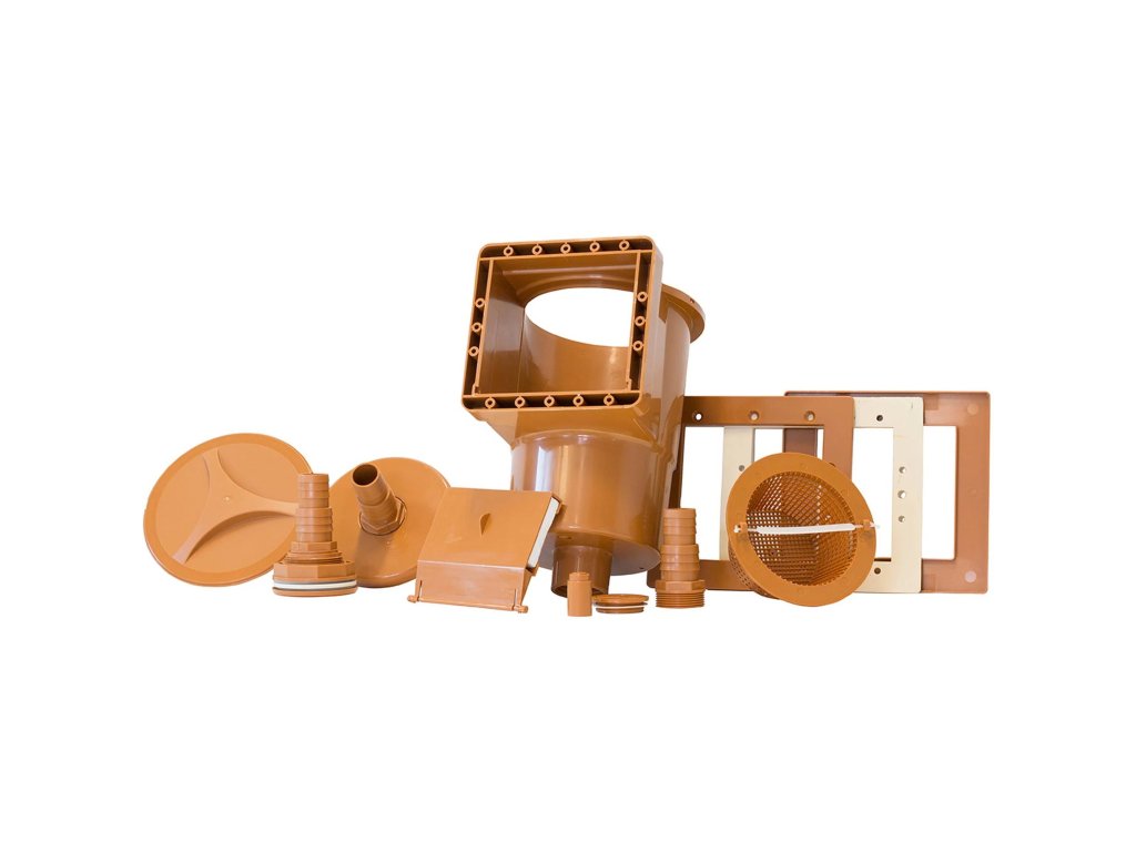 Skimmer CF vestavný - hnědý Univerzální skimmer pro téměř všechny bazény s ocelovou stěnou na trhu s otvorem ve stěně 148 x 140 mm. Skimmer je připojitelný na bazénové hadice o rozměru 32 nebo 38 mm. Součástí balení skimmeru jsou vratná tryska (pro otvor 60 mm a připojení bazénové hadice 32/38 mm), sběrný košík, plovoucí klapka proti návratu nečistot do bazénu a víko s hubicí pro připojení ručních a poloautomatických vysavačů. Detailní souhrn obsahu balení: - tělo skimmeru - víko skimmeru - víko s hubicí pro připojení vysavače - upínací příruba - dvojité těsnění - vstupní tryska - skimmerový koš - přírubové šrouby - fixační šrouby - děrovací špendlík - klapka skimmeru - teflonová páskaDoplňkové parametry