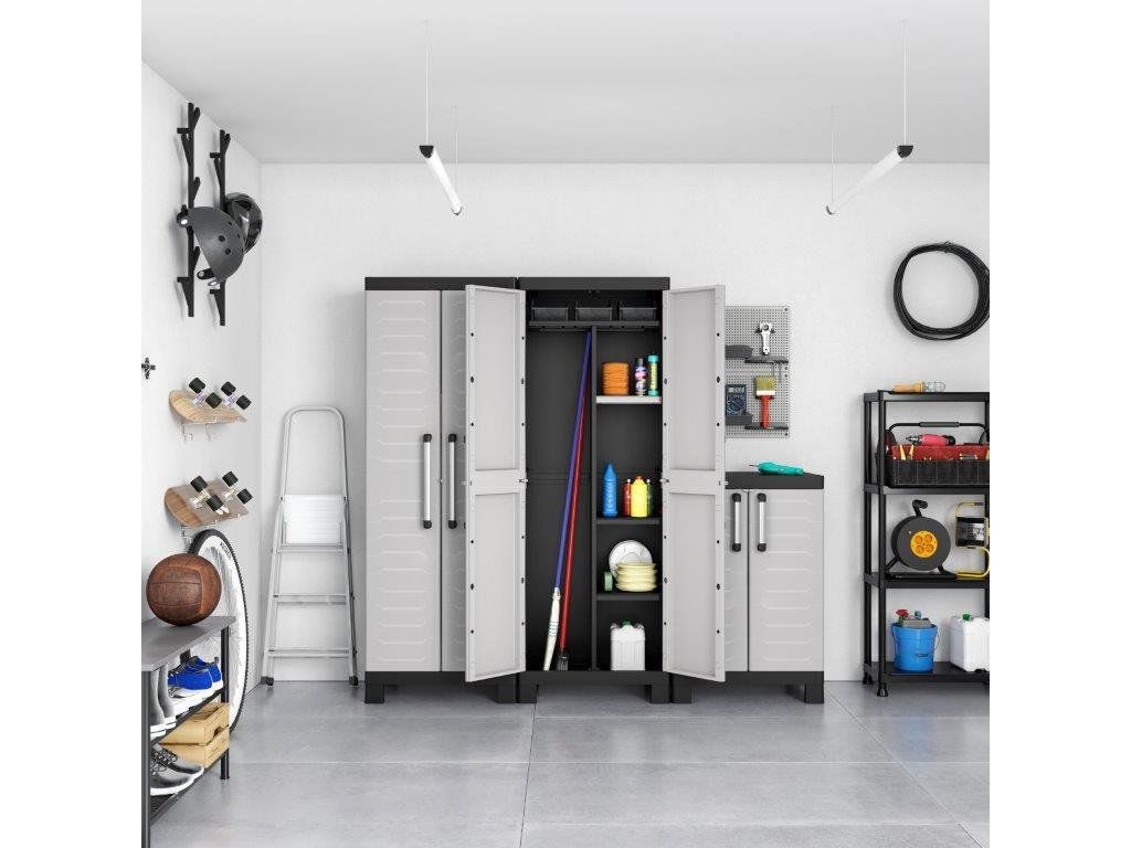 Skříň Keter Detroit Low obsahuje celkem 2 přídavné police, které maximálně zpřehlední organizaci vnitřního prostoru. Každá z nich poskytuje maximální nosnost až 15 kg, což přijde vhod pro výrazně těžší předměty všeho druhu. V útrobách skříně tak pohodlně uchováte i rozličné dílenské a zahradní nářadí, které by se jinam nevešlo. Velkou výhodou produktové řady Keter Detroit je také jednotný spojovací systém, díky kterému vytvoříte kompletní skříňovou stěnu pro všestranné využití dle vašich potřeb a preferencí.