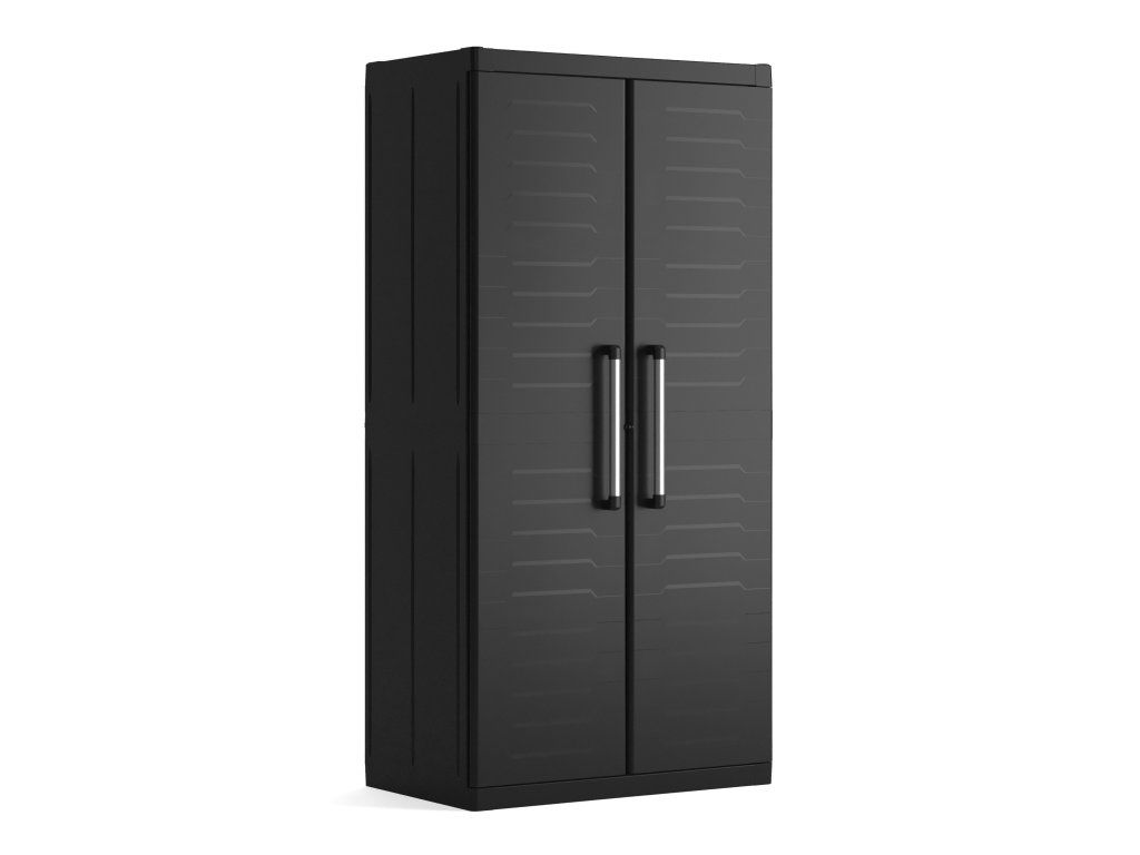 Skříň obsahuje celkem 4 přídavné police - každá s výraznou nosností až 15 kg, které přijdou vhod pro výrazně těžší předměty všeho druhu. Lze ji tedy využít pro skladování dílenského nářadí či zahradnických potřeb, kdy přijde vhod pro uložení náčiní s dlouhou násadou, které by se jinam nevešlo. Díky svému provedení v neutrální černé barvě zapadne do každého prostoru bez ohledu na jeho konceptuální styl.