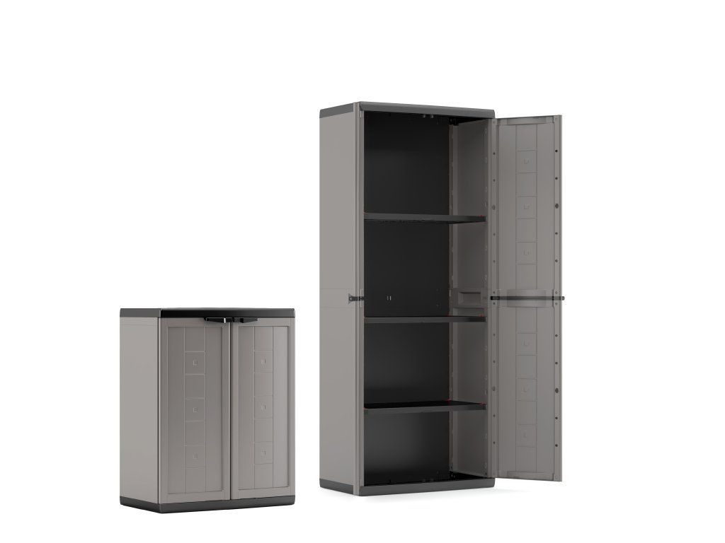 Hledáte odolnou, lehkou a snadno sestavitelnou skříň? Keter Jolly High italské výroby vás potěší snadnou montáží bez nářadí, možností uzamčení visacím zámkem a nastavitelnými policemi, které unesou až 15 kg každá. Plastová skříň Keter Jolly High je praktické úložné řešení do dílny, sklepa i domácnosti.